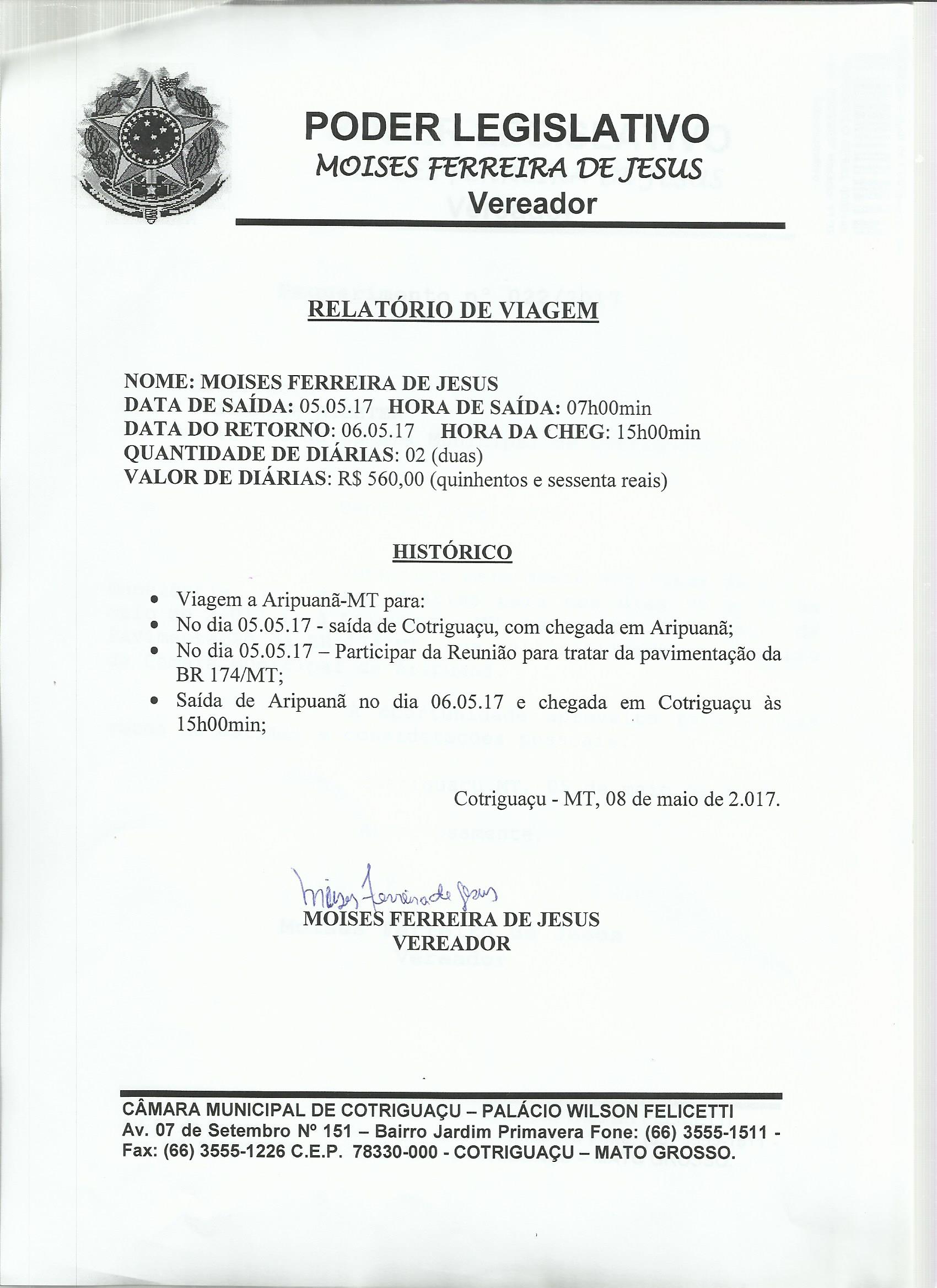 MOISES (REQD Nº 038/2017 - Requerimento de Diaria)