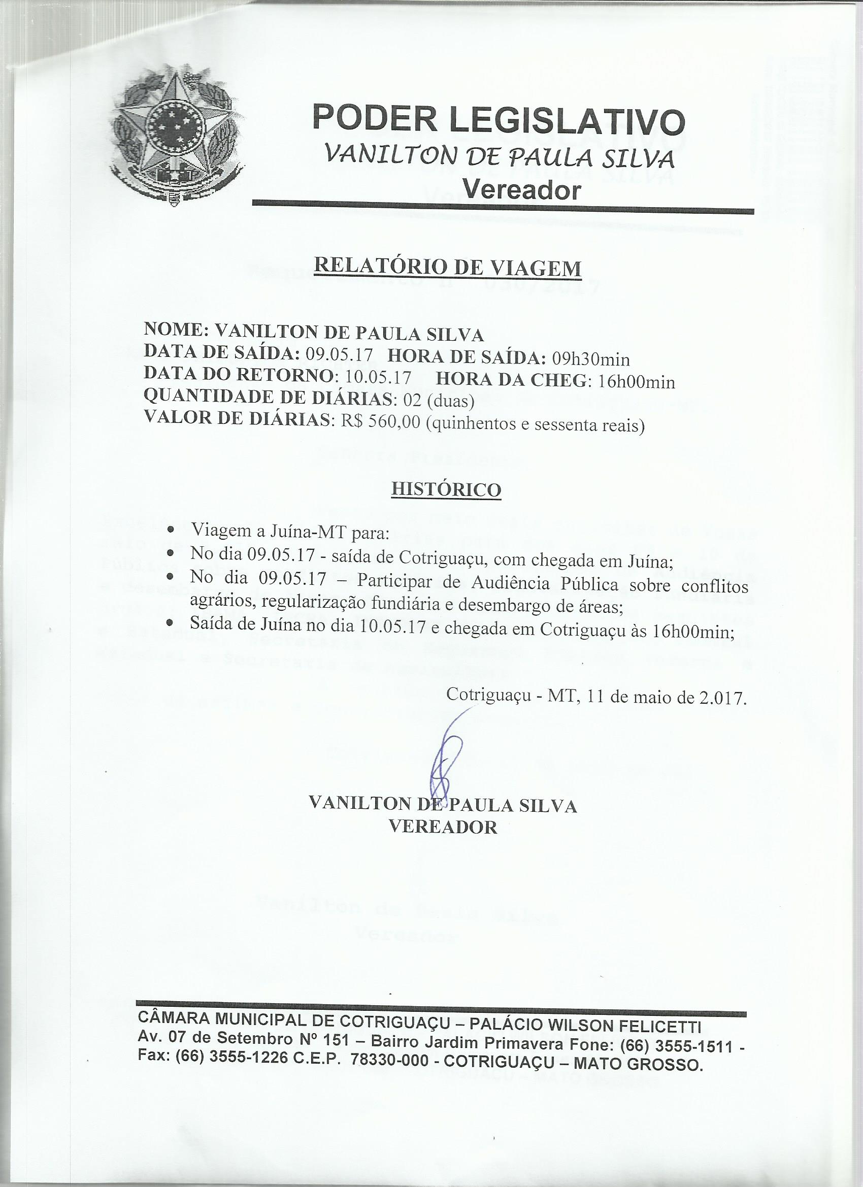 VANILTON (REQD Nº 045/2017 - Requerimento de Diaria)