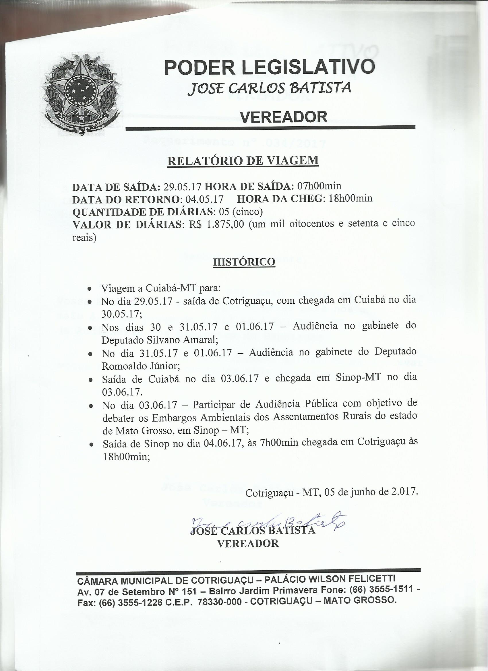 JOSE CARLOS (REQD Nº 048/2017 - Requerimento de Diaria)
