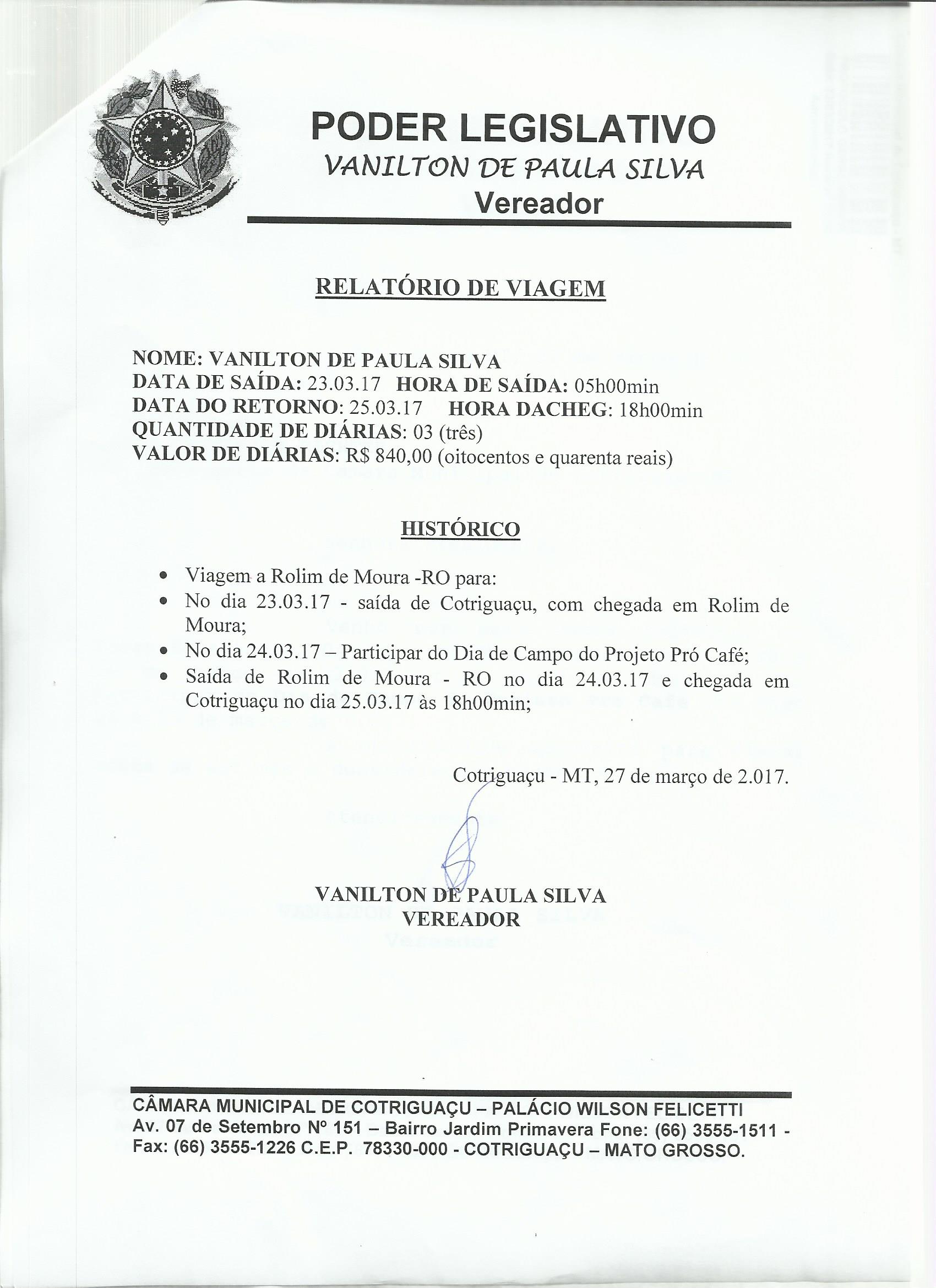 VANILTON (REQD Nº 054/2017 - Requerimento de Diaria)