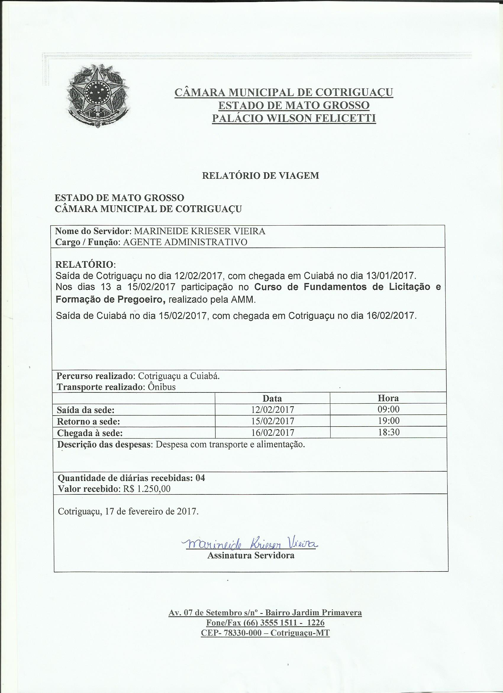 MARIDEIDE (REQD Nº 008/2017 - Requerimento de Diaria)