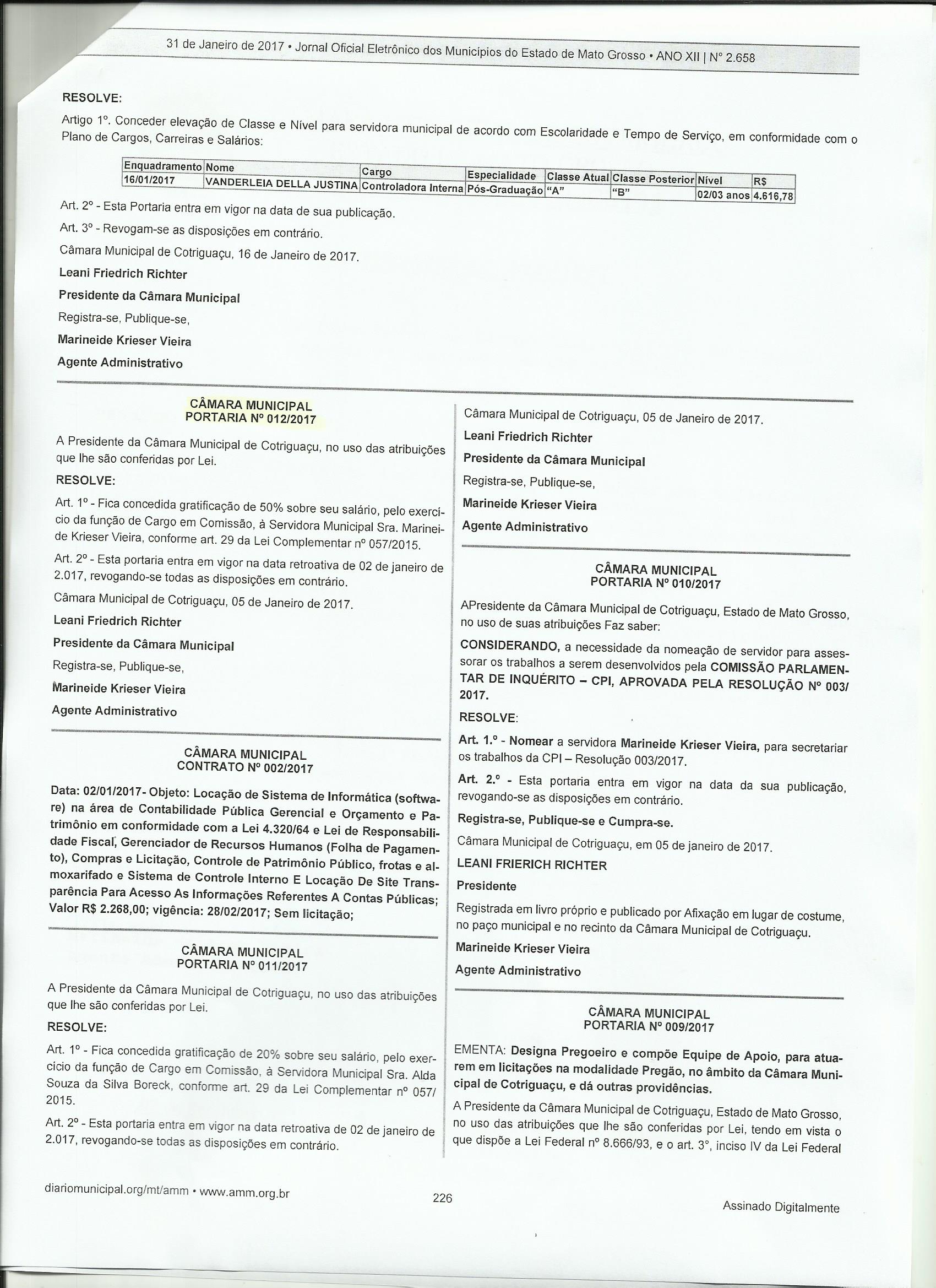 PORTARIA PUBLICADA (PORT Nº 012/2017 - Portaria)