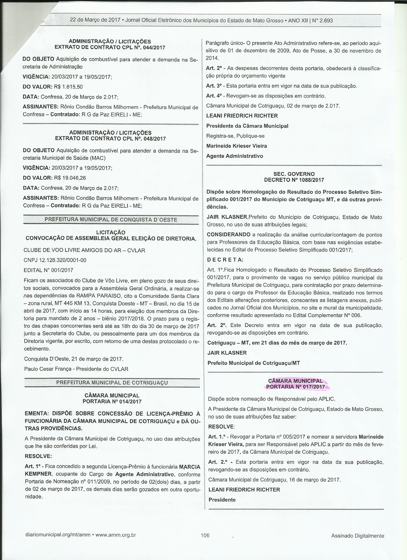 PORTARIA PUBLICADA (PORT Nº 017/2017 - Portaria)