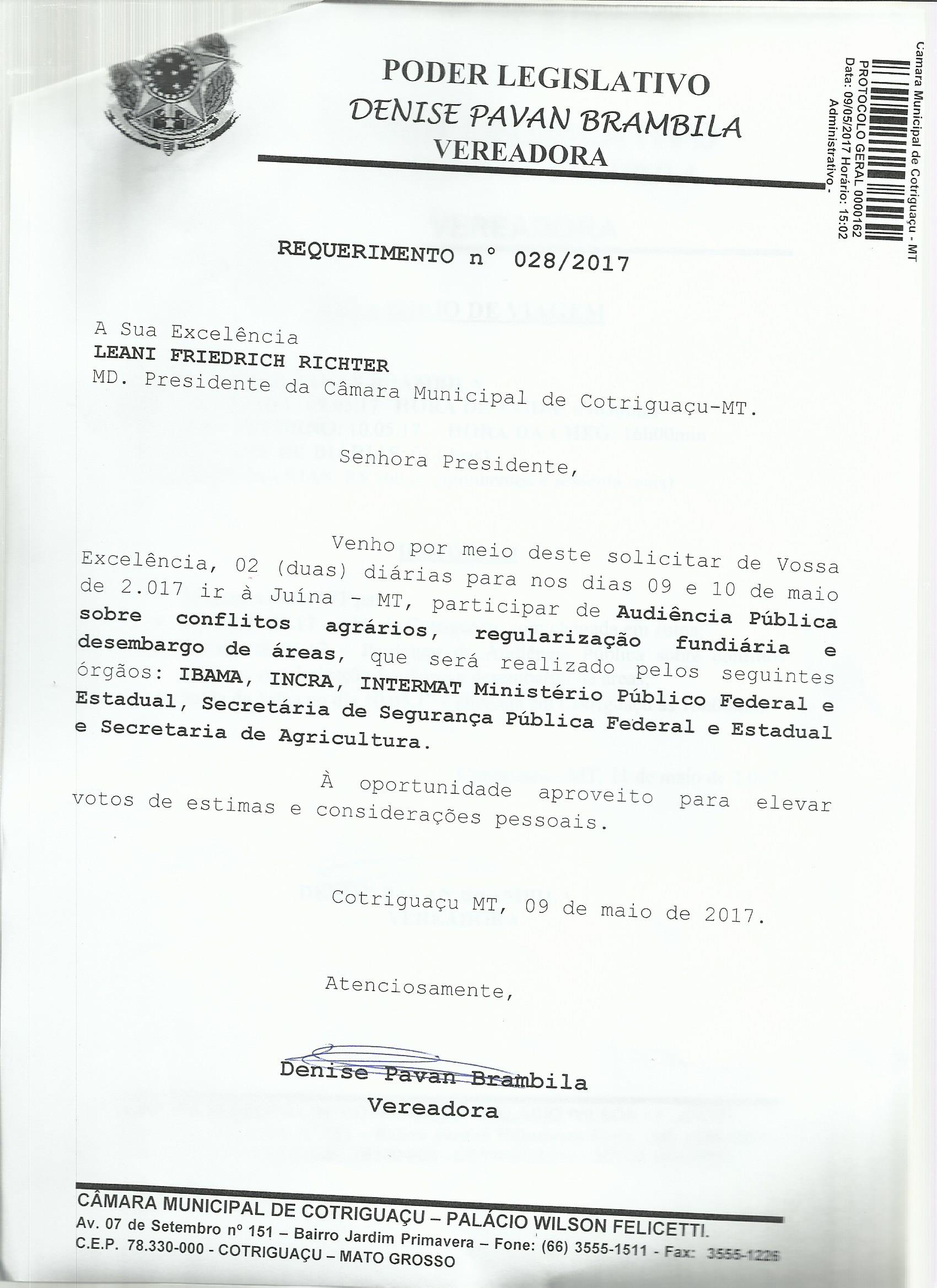 REQD Nº 048/2017 - Requerimento de Diaria