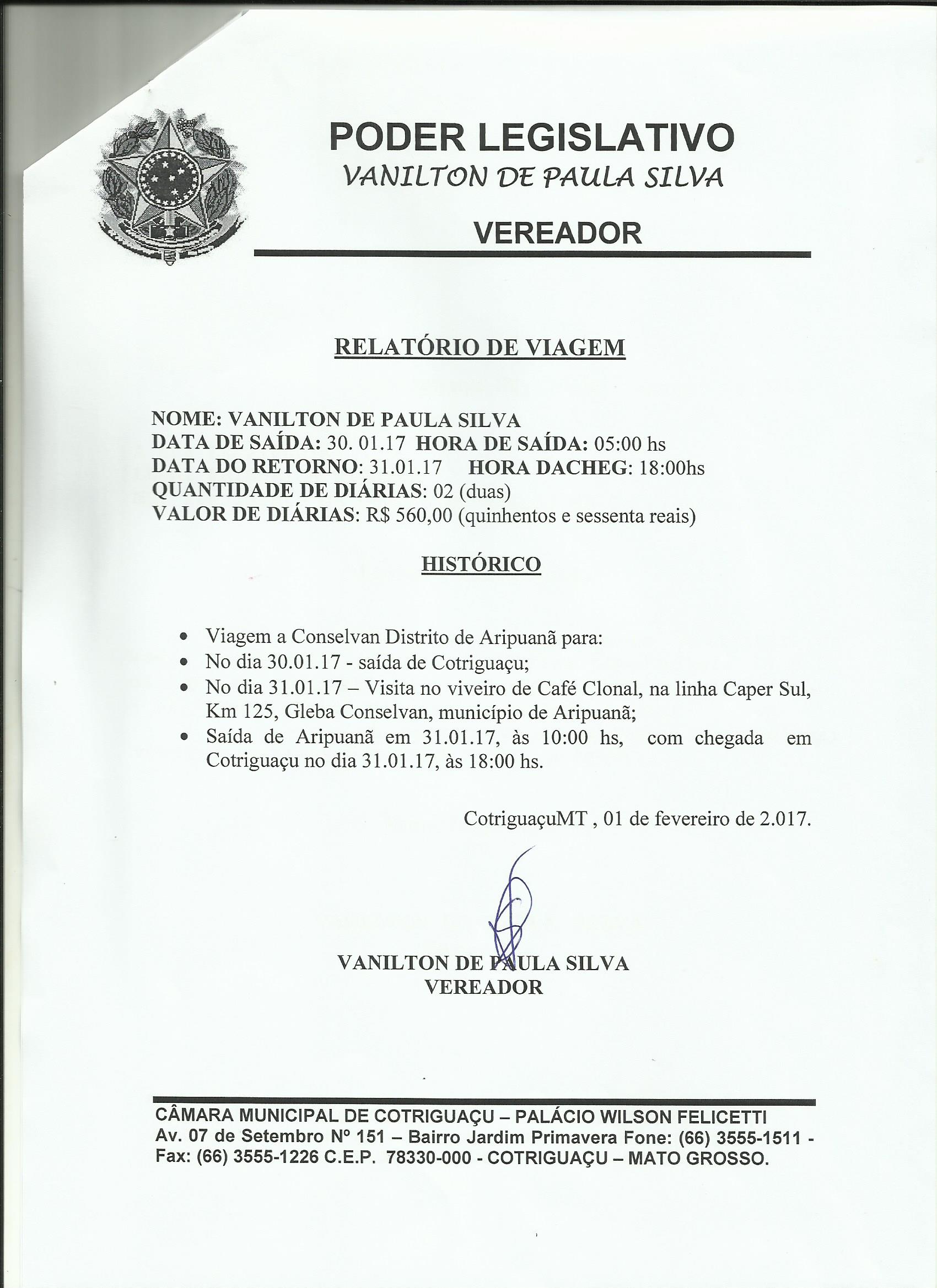 Assunto: DUAS DIÁRIAS AO VEREADOR VANILTON DE PAULA SILVA A CONSELVAN DISTRITO DE ARIPUANÃ, PARA FAZER VISITA AO VIVEIRO DE CAFÉ CLONAL